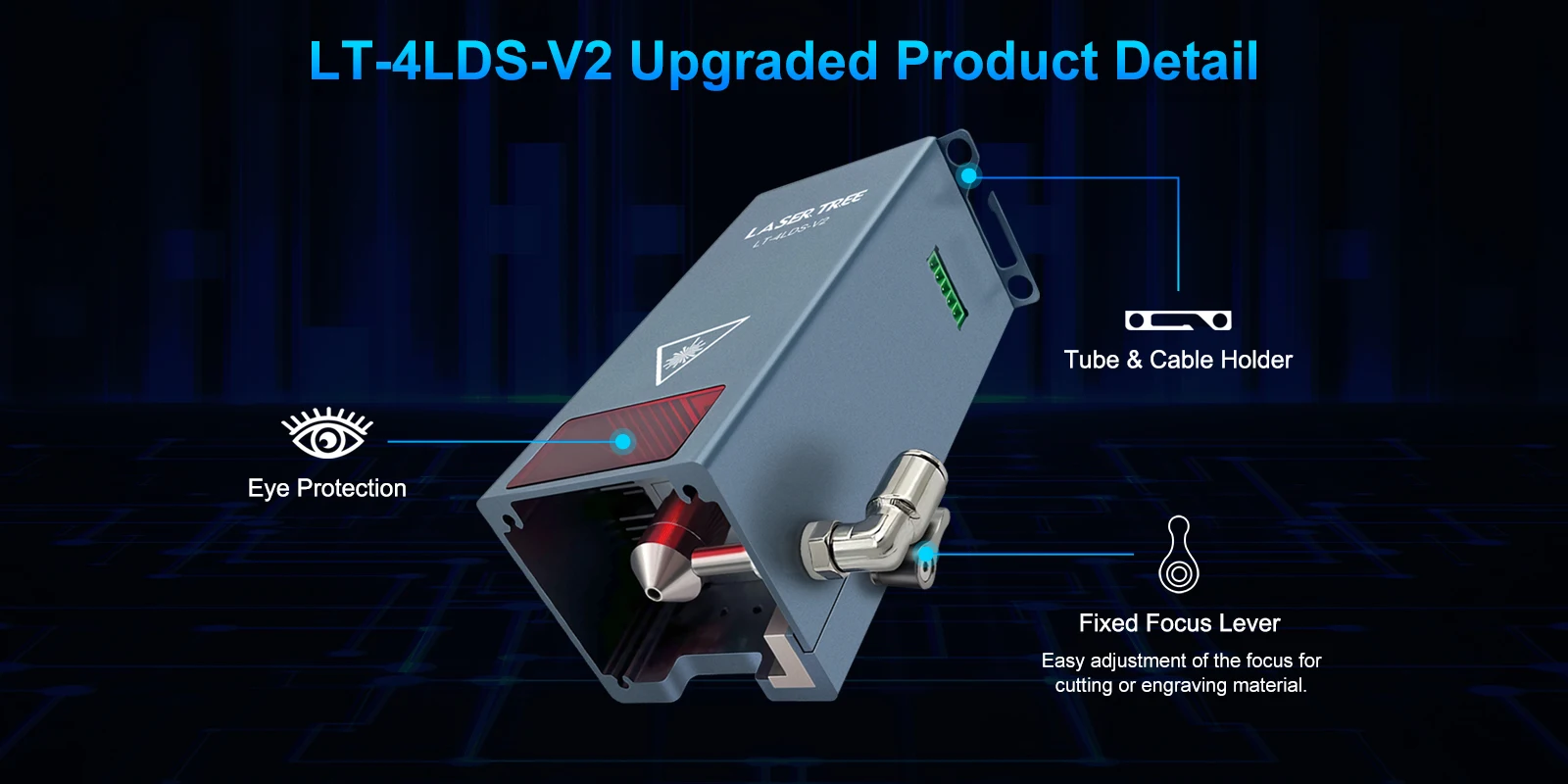 O LT-4LDS-V2 é um módulo de corte profissional projetado para processos de corte e gravação fina seguros de longo prazo.É uma cabeça de laser azul com potência óptica de 20W.Comparado com o V1, o V2 foi bastante aprimorado com um novo design de caixa, assistência de ar mais fácil de usar, distância focal mais longa e potência de saída de corte mais estável.Corte 10 mm de compensado a 3 mm/seg de cada vez, criando facilmente o efeito desejado no padrão.Se você gastar maior parte do tempo de trabalho cortando, o LT-4LDS-V2 será um bom parceiro para você.