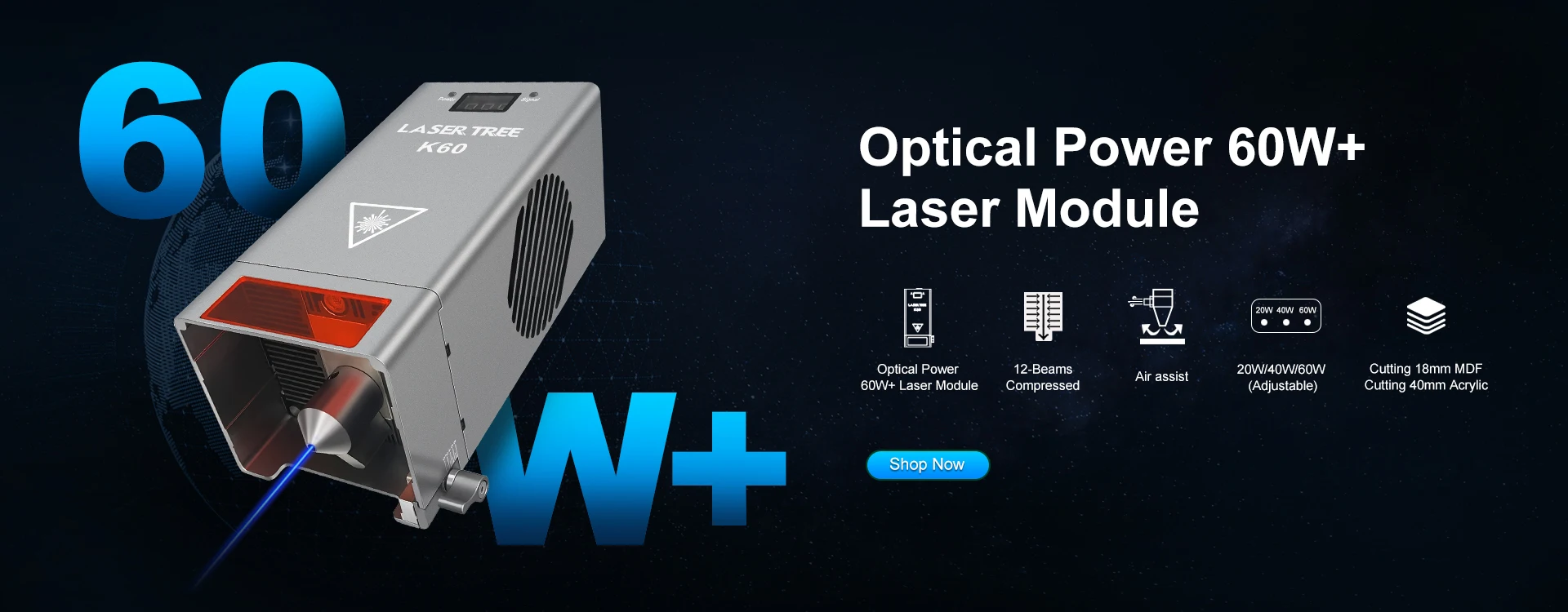 LASER TREE K40 é um verdadeiro módulo de gravação e corte a laser com saída de 40 W + projetado para cortes poderosos.Ele usa tecnologia de compressão de feixe para combinar diodos laser de 8 * 5,5 W em um único feixe de laser poderoso com potência de laser de 40 W+.