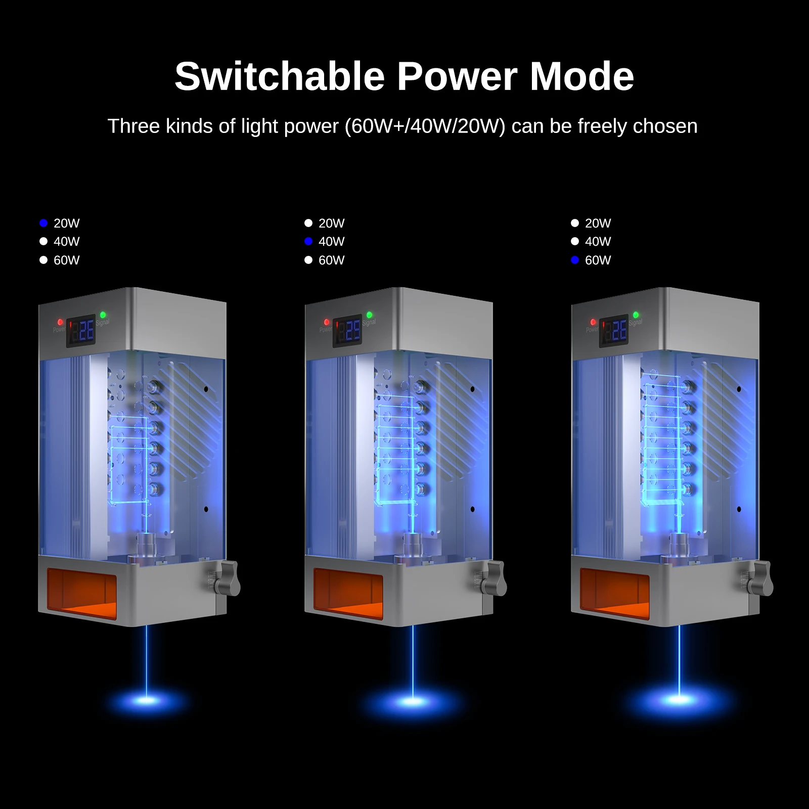 Ordem de comutação de potência óptica: 60W→40W→20W