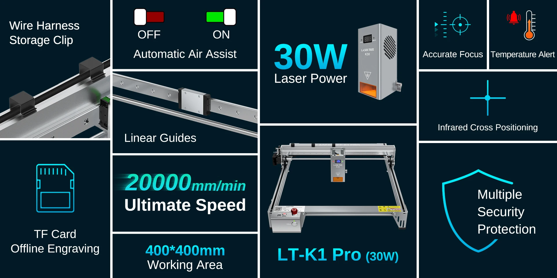 LASER TREE K1PRO Gravador a Laser 30W Máquina de Corte e Gravação a Laser CNC Ferramentas DIY Área de Gravação 400X400mm Máquina de gravação a laser - LT-K1-PRO (30W ou 40W)/-LT-K1-PRO-(30W ou 40W)-KIT
