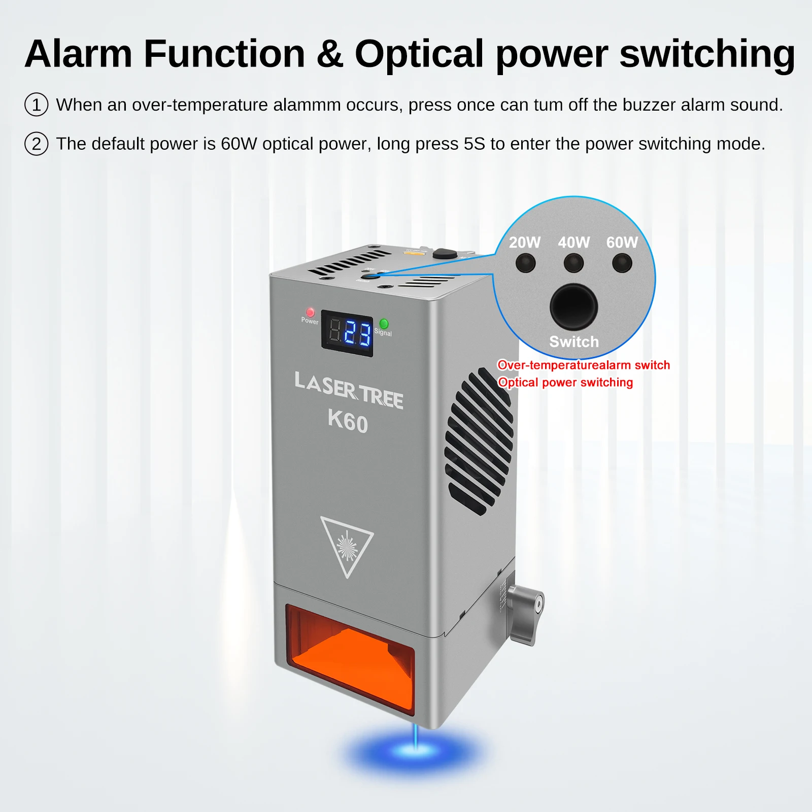 Laser tree k60 módulo laser 60w potência óptica com assistência de ar 12pcs diodos módulo ttl para gravador cnc ferramentas de corte de madeira