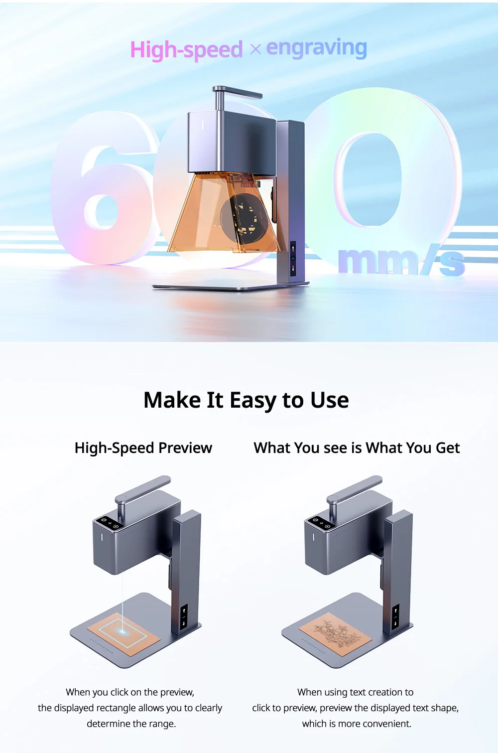 • Engraving Area: Regular carving area: 100 x100mm paint layer metal effective carving area: 60 x 60mm