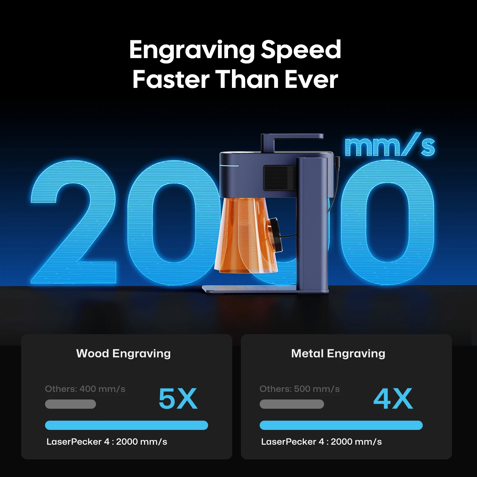 2:8K Hyper Gravação a 240.000 mm/min: A tecnologia patenteada do galvanômetro atinge precisão de 1270 dpi - grave designs do tamanho de um smartphone em <2 minutos.83% menos granulação do que os sistemas 4K convencionais.