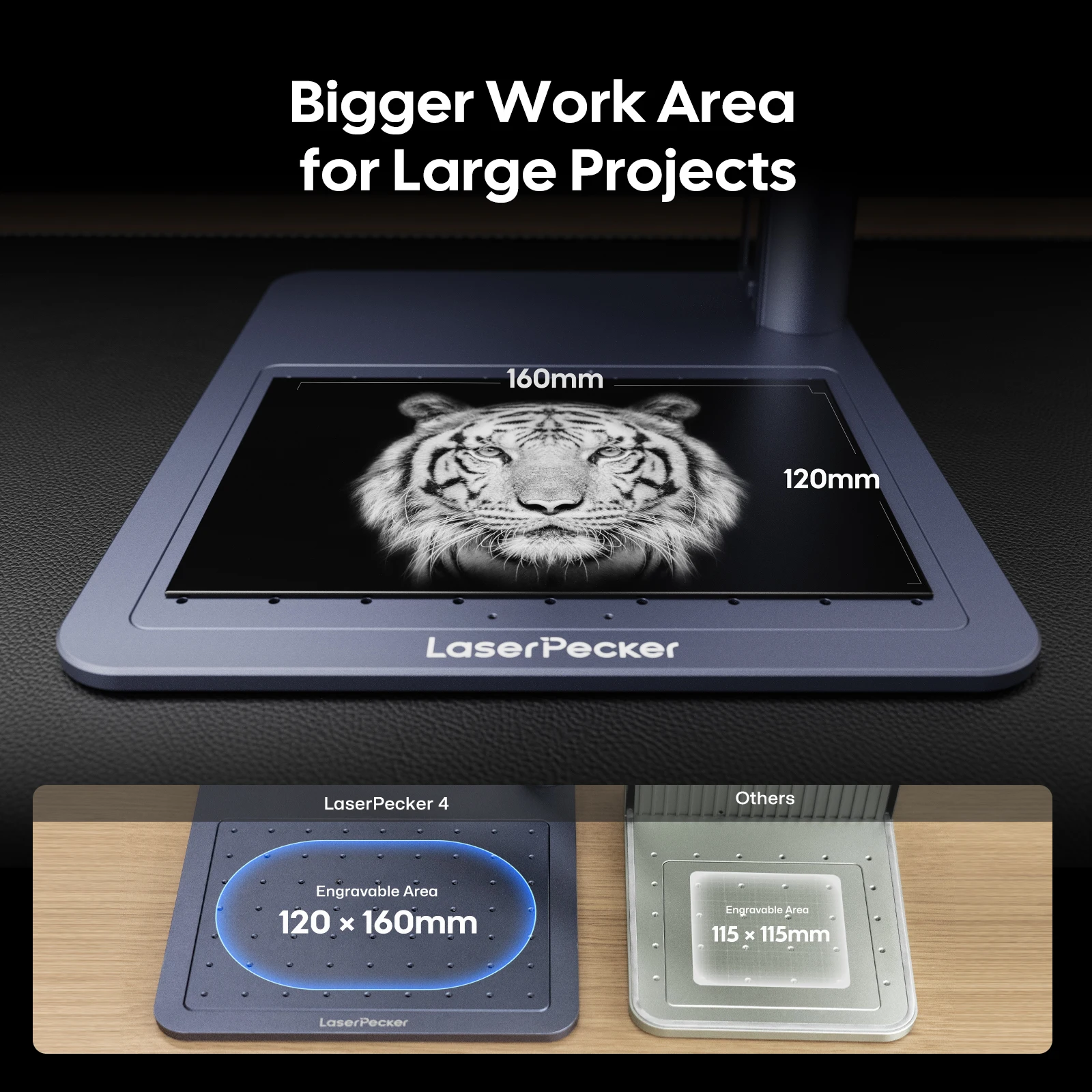 1:Espaço de trabalho expansível líder do setor (160x300mm): Os lasers infravermelhos duplos + diodo lidam com mais de 10 materiais simultaneamente.A extensão deslizante cria uma área 2,6 vezes maior do que os gravadores padrão - perfeita para gravar joias e placas em lote.