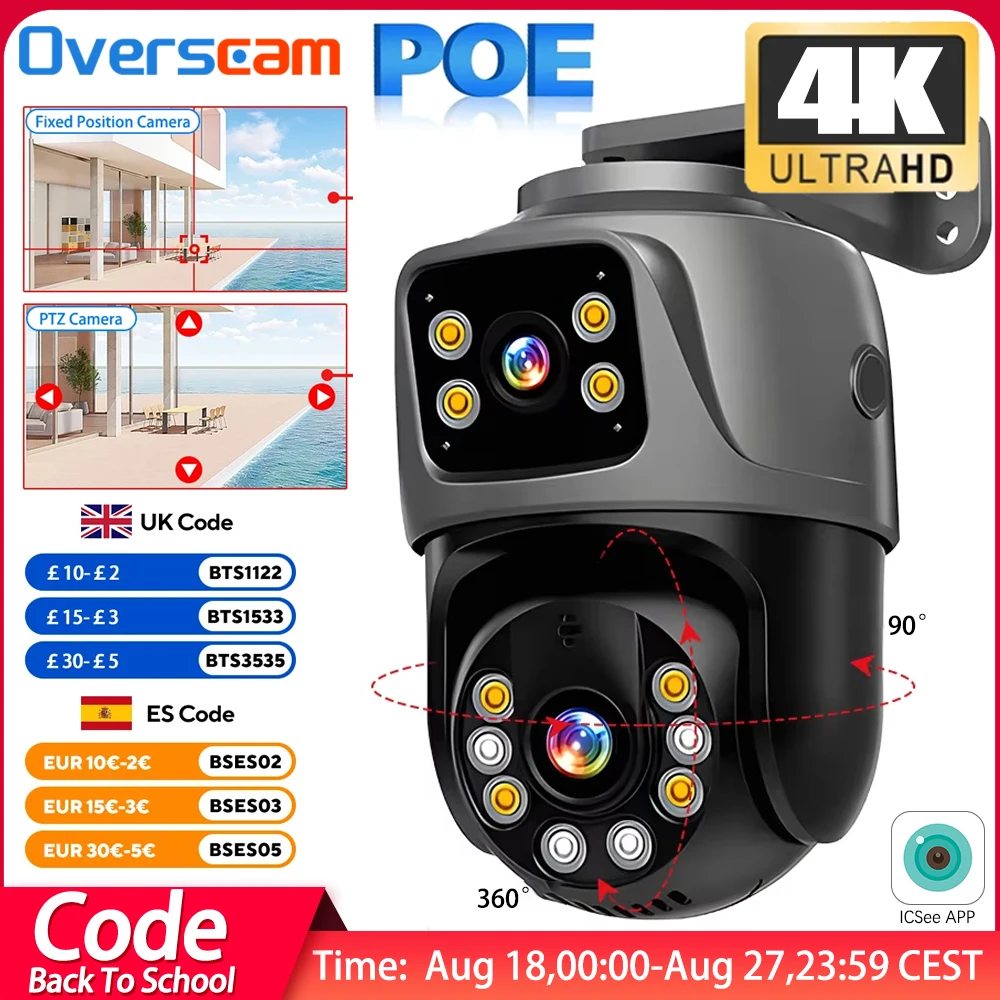 Lente dupla 4k 8mp ptz poe câmera ip áudio bidirecional ao ar livre câmera de vigilância de segurança em casa câmeras de vigilância cctv iCSee XMEye