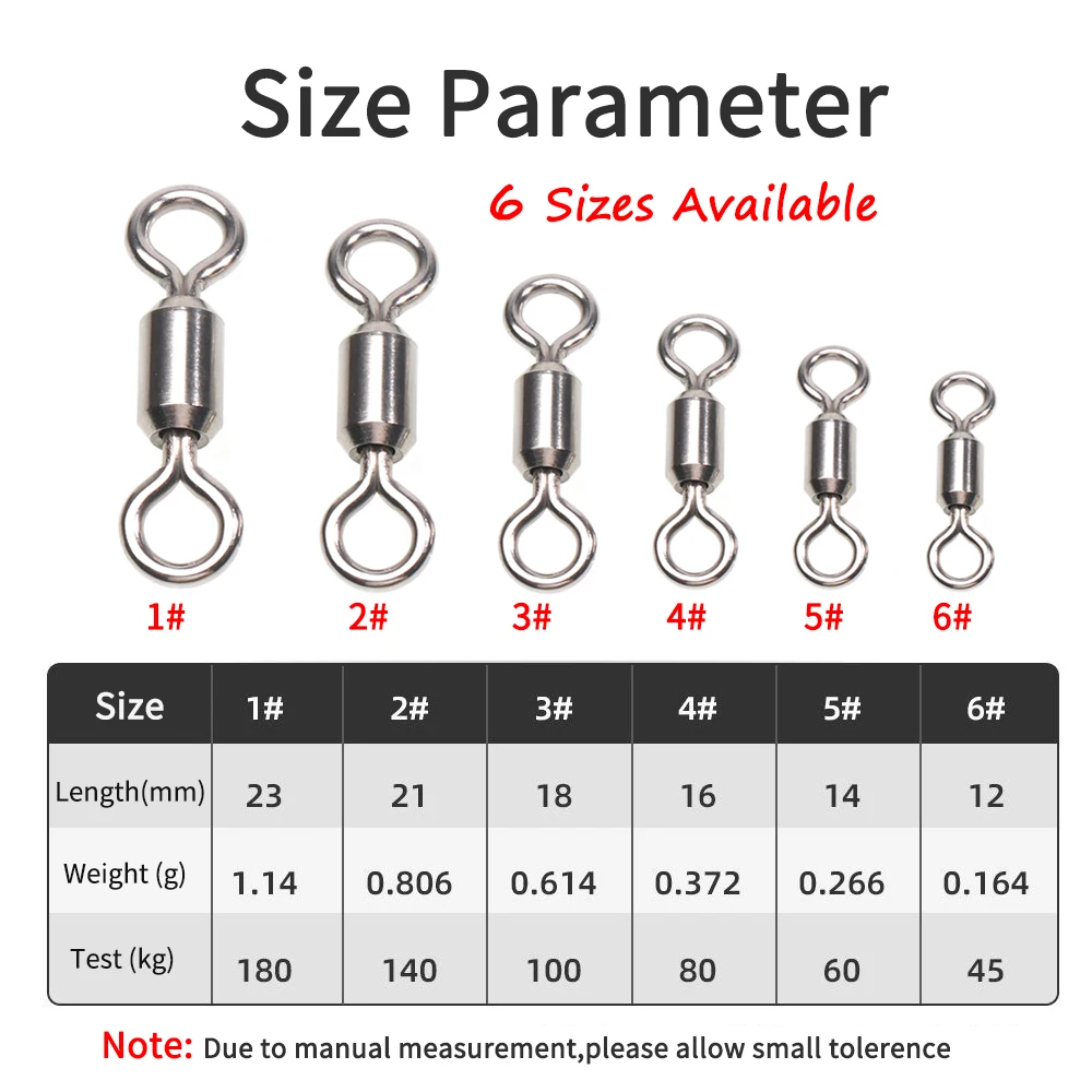 Lionriver 30PCS 1 # - 6 # Alta Resistência de Aço Inoxidável Guindaste Giratório Água Salgada Pesca Rolando gira Pesca Gancho Linha Conector