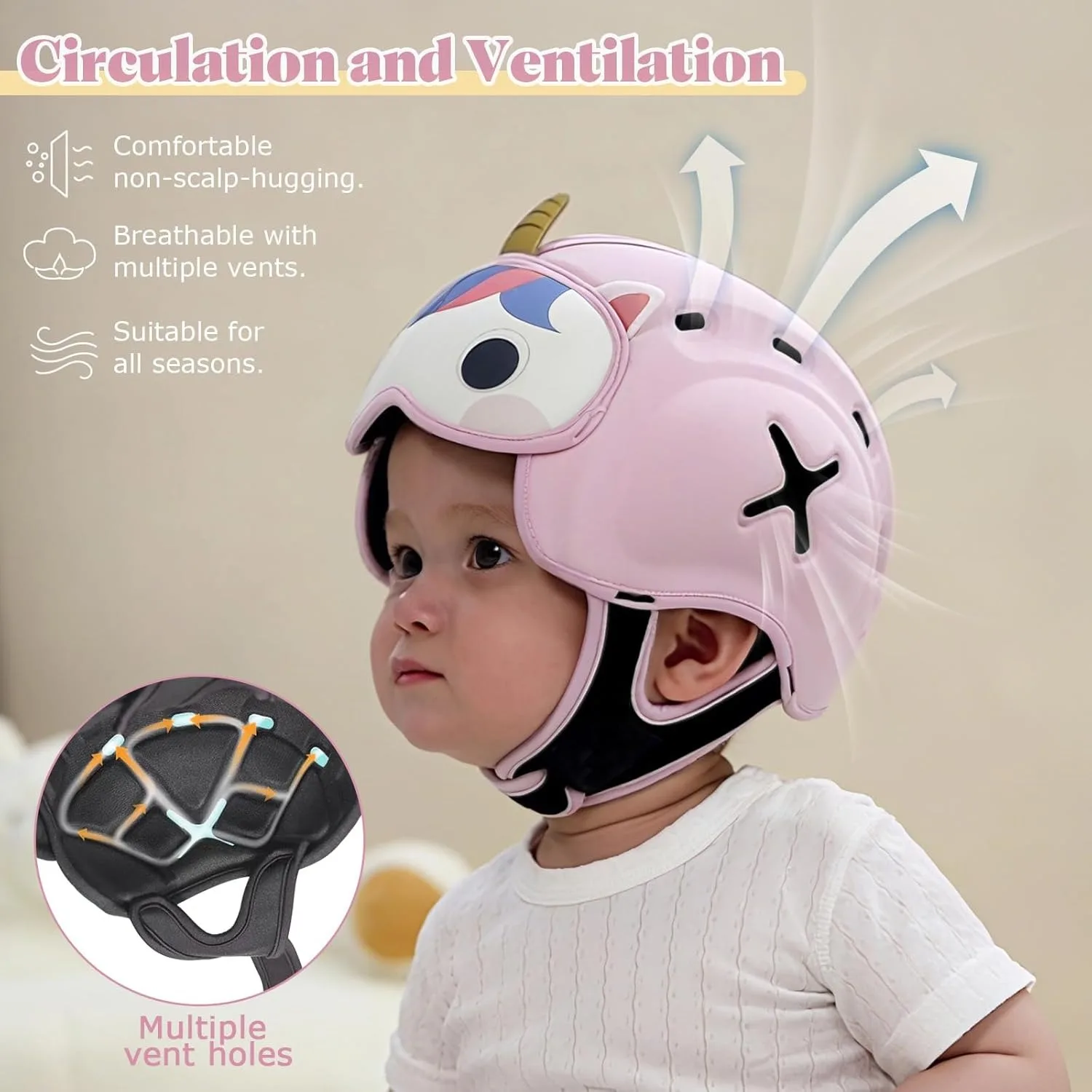 - Function: This headgearis designed to protect babies aged between 6 and 30 months when they learn to crawl, walk, and run. It prevents head injuries from bumps, falls, or drops.