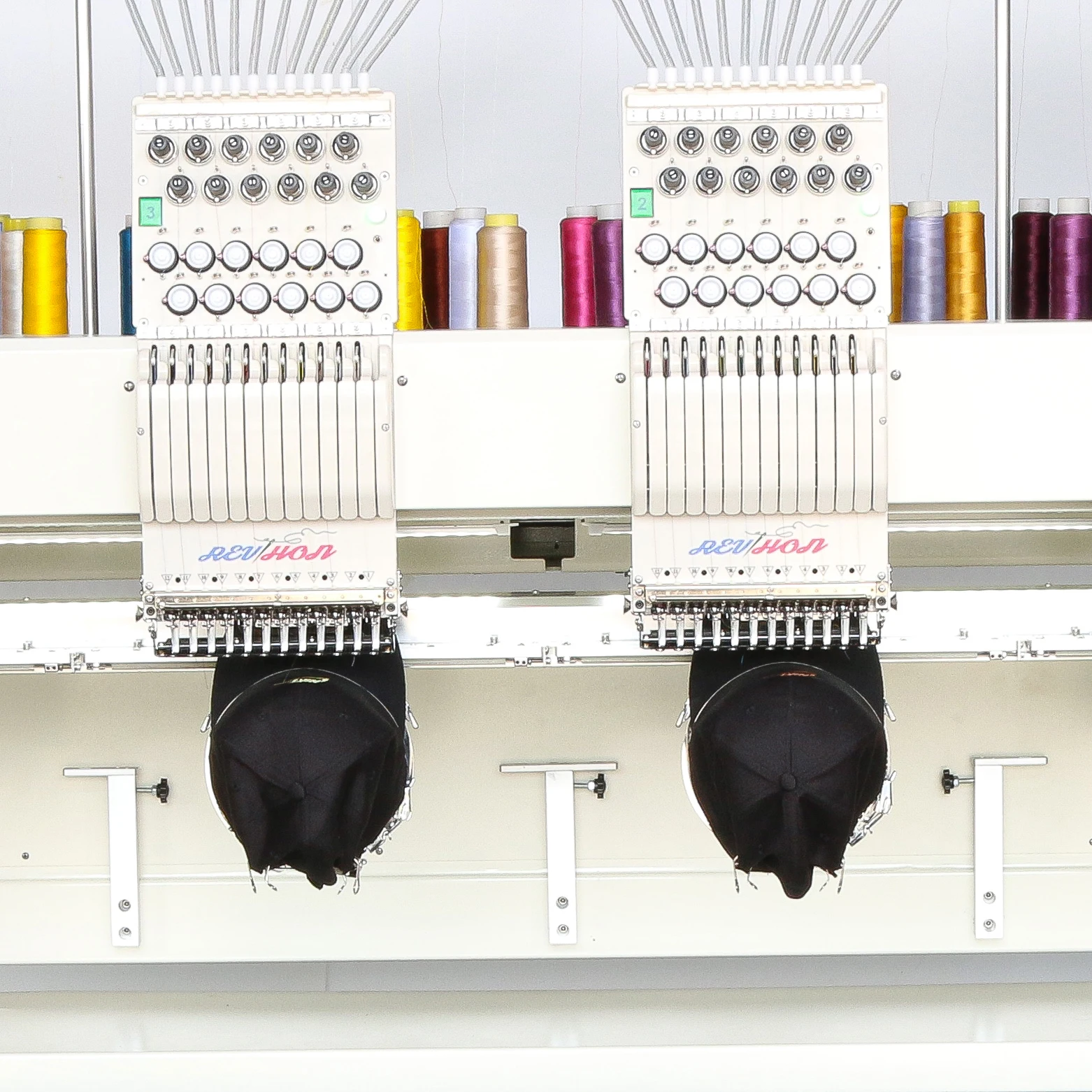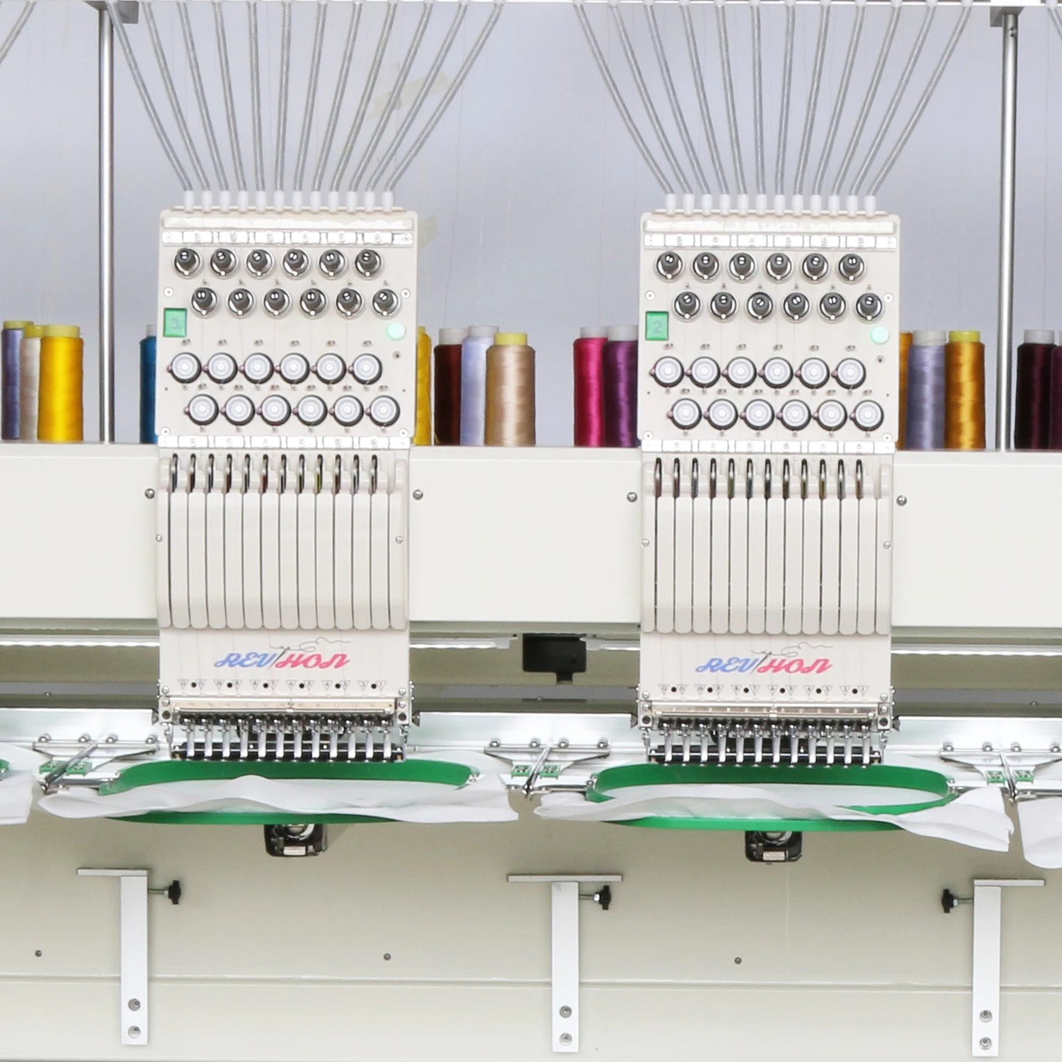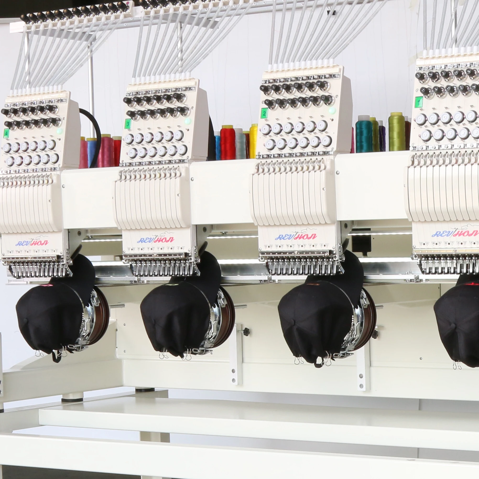2.Mudança automática de cor, detector de quebra de linha (ros superiores e de bobina), aparador de linha (ros superiores e grossos), retorno à origem evitando duplicação.