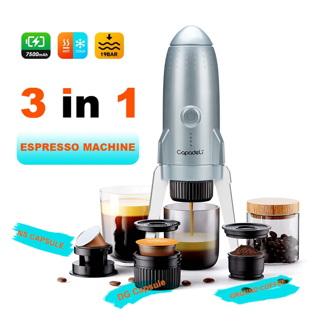 【Multicompatível】A máquina de café expresso portátil 3 em 1 está equipada com um compartimento de café moído e um compartimento de cápsulas, que é compatível com cápsulas pequenas e grandes e café moído.
