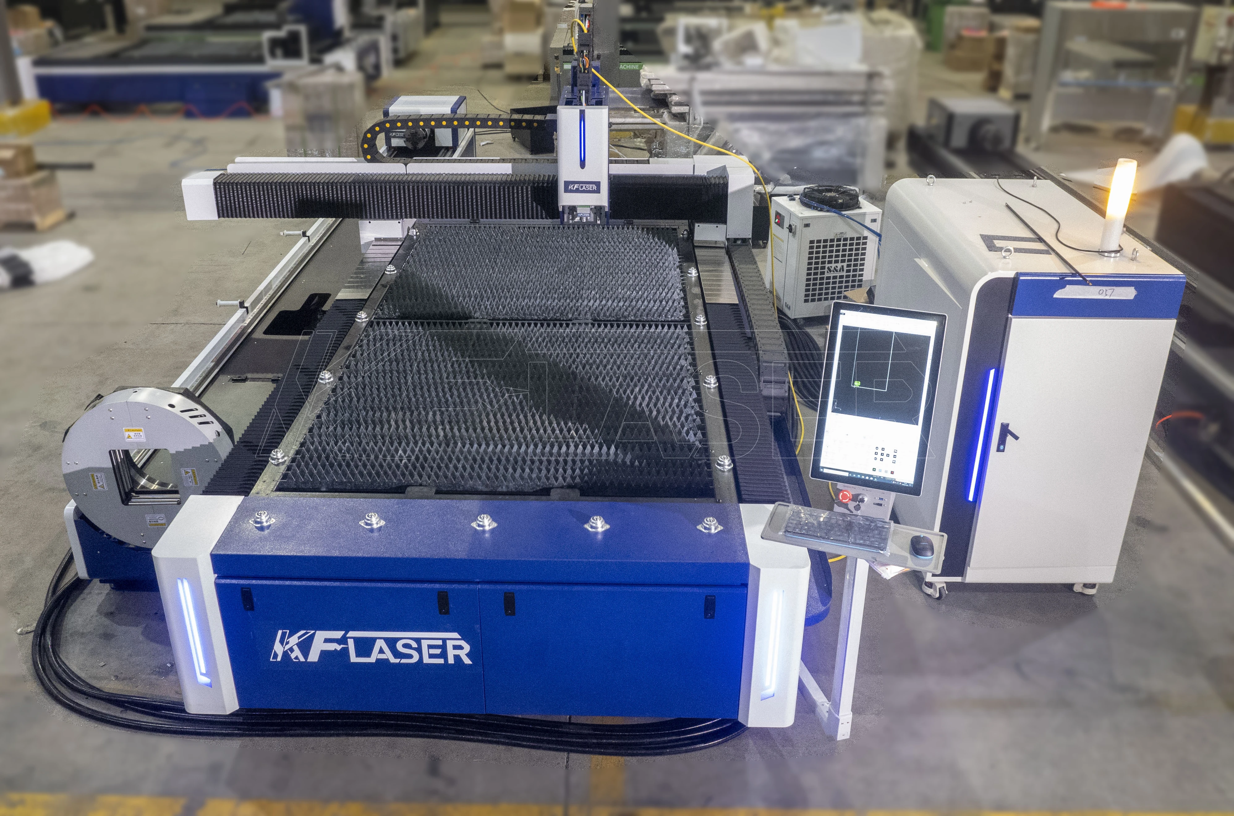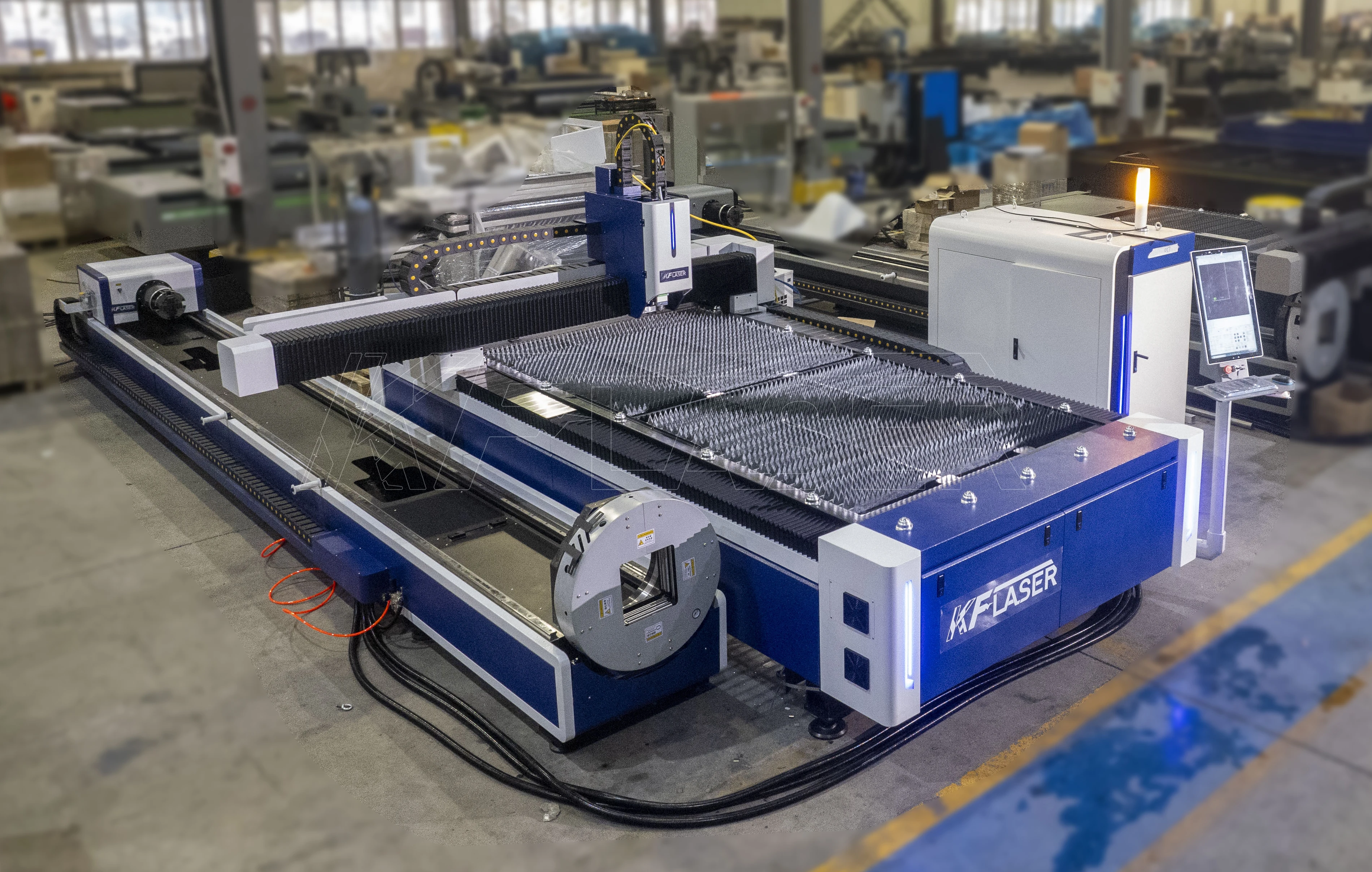 Máquina de corte a laser de fibra KF 3000W 6000W para aço inoxidável 4 eixos CNC cortador de fibra tubo de chapa metálica