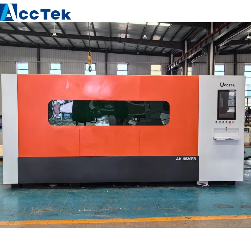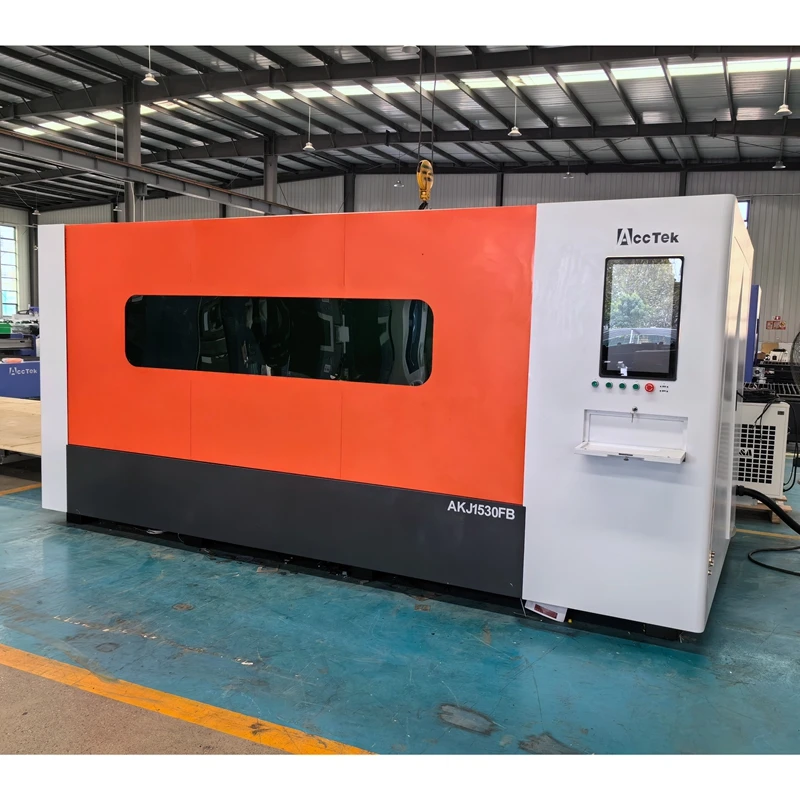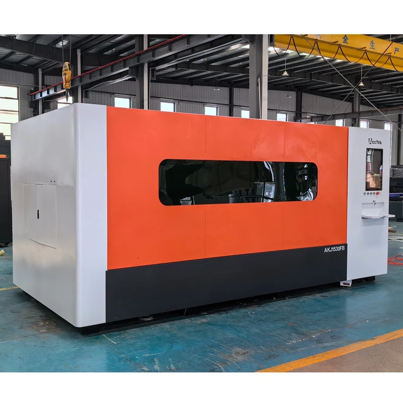 Máquina de corte a laser de fibra 3000w, Corte a laser de chapa metálica com AKJ1530FB fechado, personalizada, , Novo design