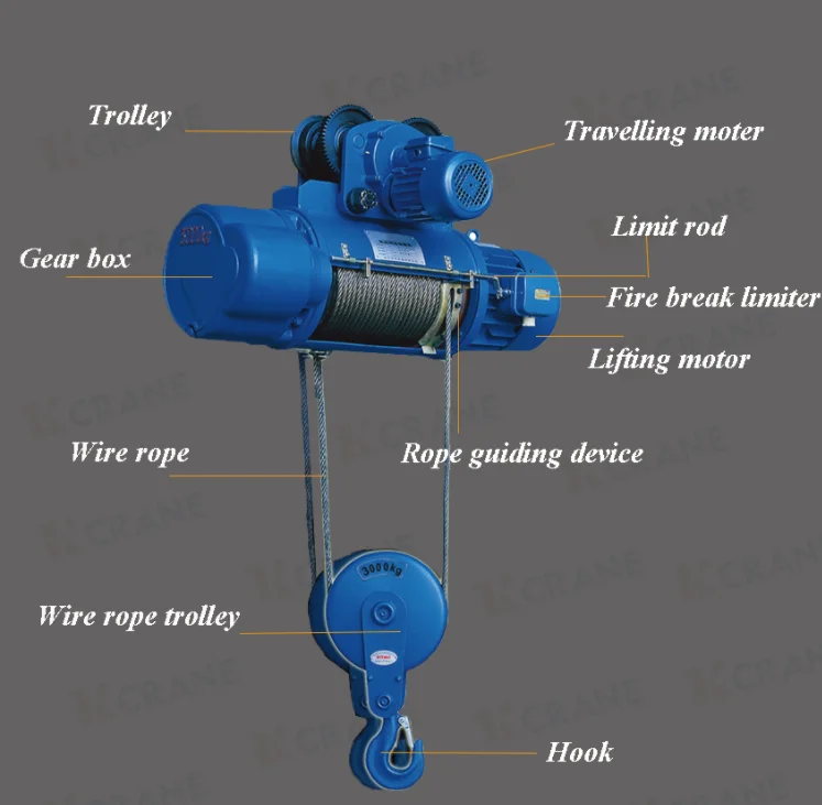 Máquina de elevação operação suave 1/ 5 toneladas CD1 MD1 corrente de cabo de fio guincho de construção elétrica