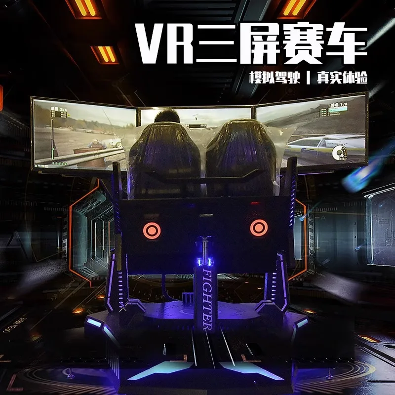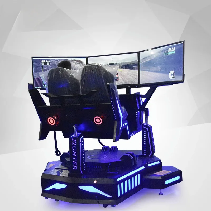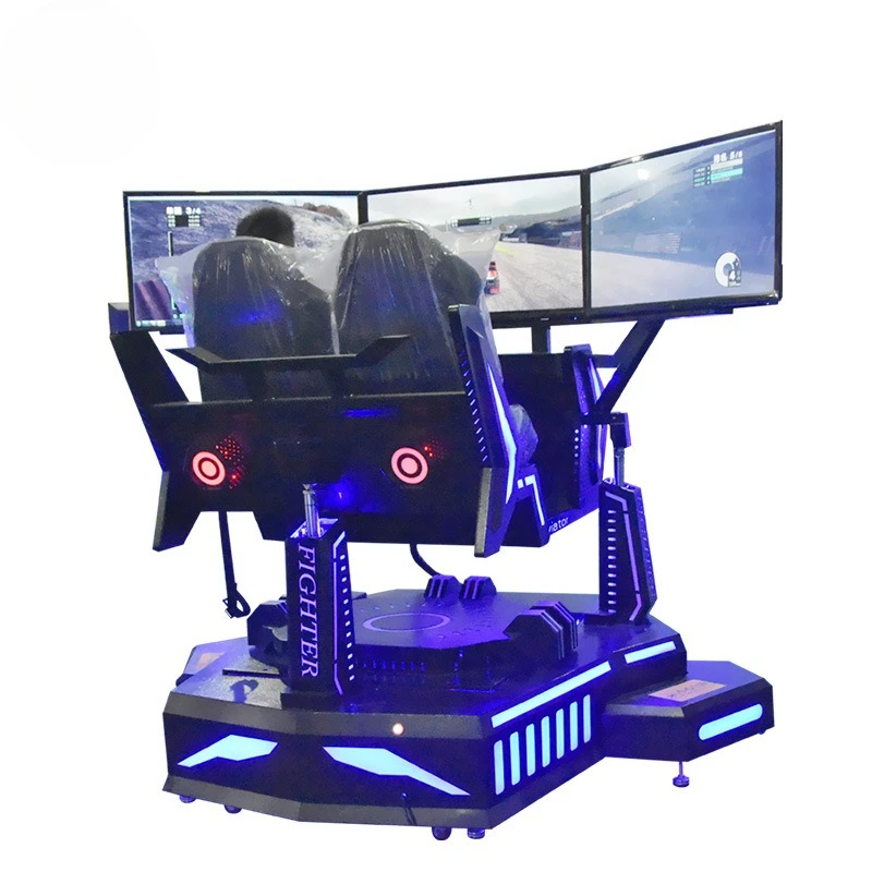 Máquina multifuncional de três eixos para corrida de três telas, realidade simulada, experiência VR, equipamento comercial, máquina de jogo dinâmica