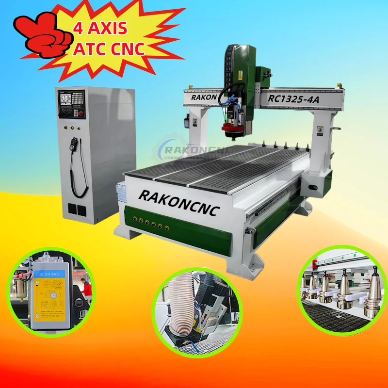 RAKONCNC ALTA PRECISÃO 1325 1530 4 AXIS ATC MDF PVC ACRÍLICO CARVADO DE MADEIRA Máquina roteadora CNC PARA ARMÁRIO