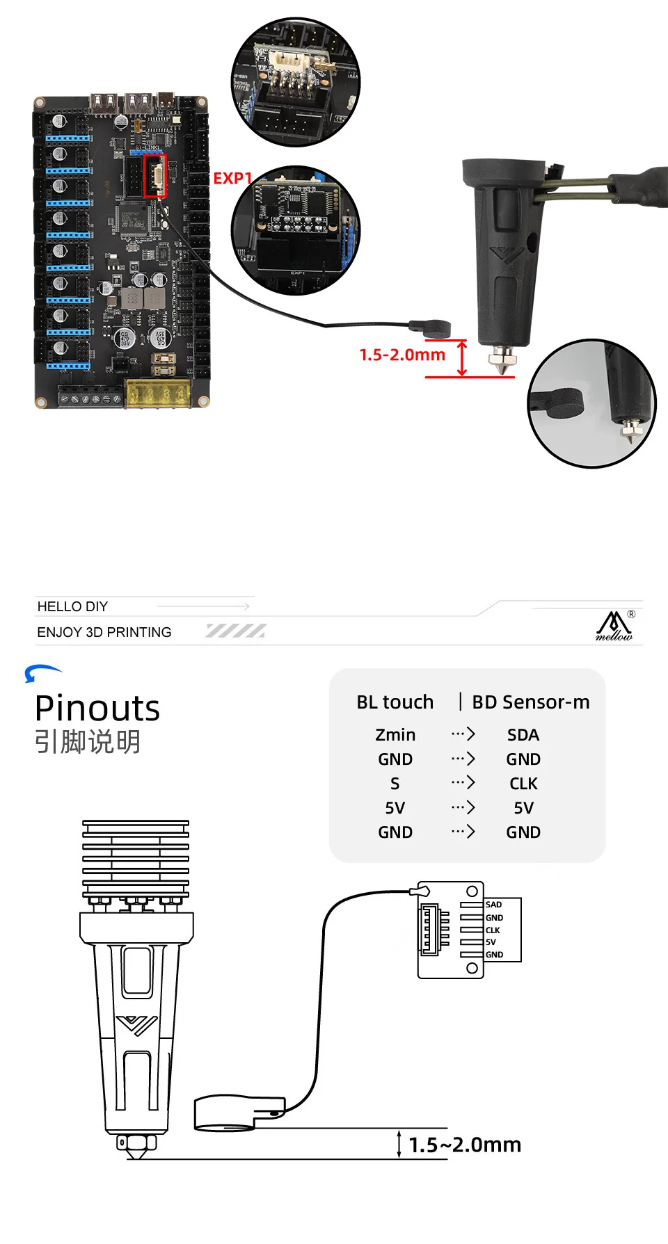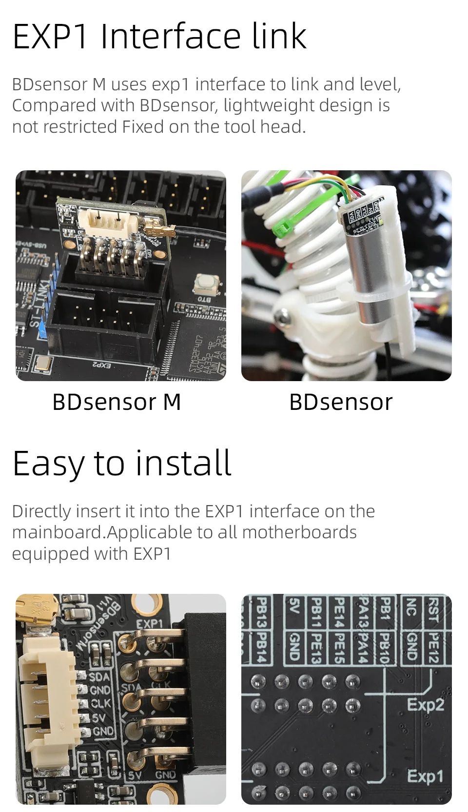 • Connection: Mainboard (BDsensor will use the exp1 interface of the mainboard)