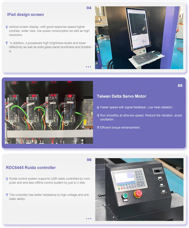 4. A cabeça do laser é ajustada automaticamente para manter a distância focal constante para que a qualidade do corte seja mais estável.