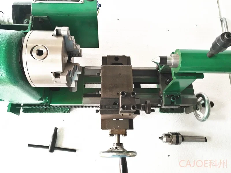 Mini metal torno parâmetros: 1) A cama tem 56 cm de comprimento, 40 cm de largura, 28 cm de altura e pesa 41 kg. 2) Com trilhos guia de trilho duplo e controles deslizantes de montanha, 3) A distância entre os dois centros é 160mm. 80mm (100) bucha flange para eixo principal. 4) O curso da bandeja grande é 190mm, o curso do transporte médio é 80mm, e o curso do suporte de faca rotativo é 50mm. Cauda do atarraxamento superior é Mohs 2 Viagem 40mm. 5) Motor de indução silencioso de alto torque (potência monofásica 220V) para o motor, potência 350W, regulação de velocidade de 5 níveis. (Nota: 1 cm = 1 cm = 1 cm)