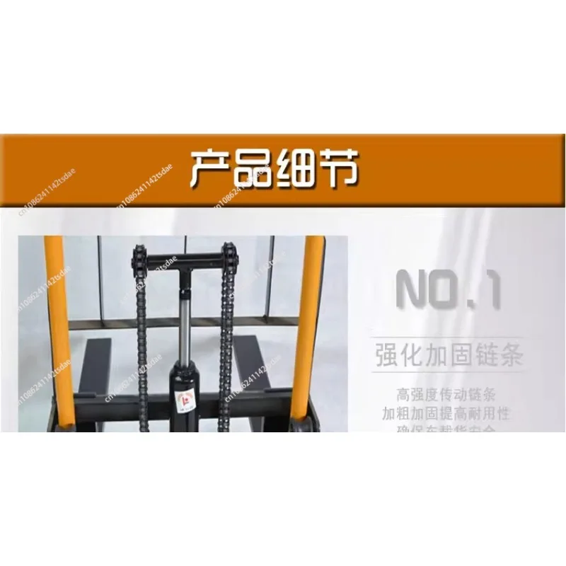 Nome: empilhadeira hidráulica de pressão manual Carga: 200kg Altura de elevação: 0,9m Altura do veículo: 125cm Largura do corpo: 73cm Comprimento do corpo: 75cm Largura do garfo: 7,5 cm Largura interna do garfo: 36cm Largura externa do garfo: 51cm Peso: 36kg