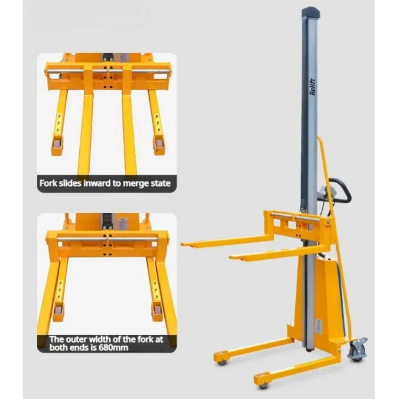 Mini empilhador elétrico de coluna única, empilhadeira elétrica portátil, estação de trabalho, bateria, carregamento e descarga elevadas