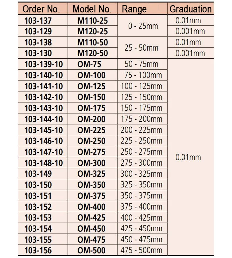 Seja o primeiro a avaliar “Mitutoyo Micrômetros Externos, Faixa Original 0-25mm, 25-50mm, 103-129, M120-25, 103-130, M120-50, Resolução 0,001mm, Fabricado no Japão”