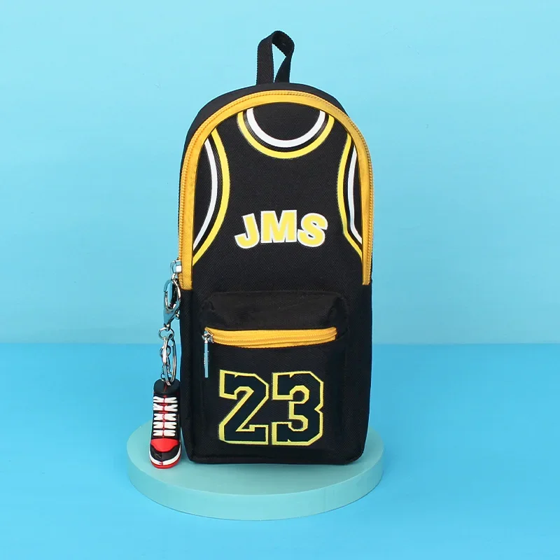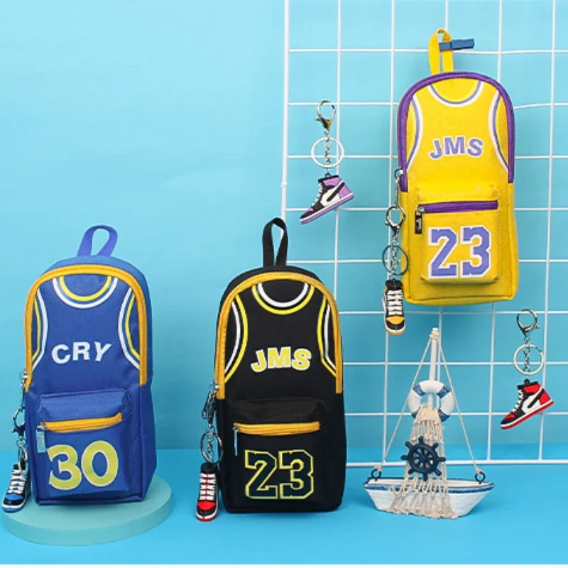 Moda lona dupla camada grande capacidade basquete lápis caso presente de aniversário estudantes saco de papelaria material escolar