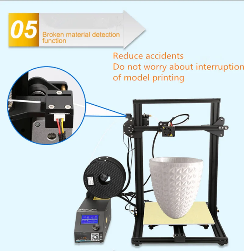 Package details: 3D Printer with filament monitoring alarm protection