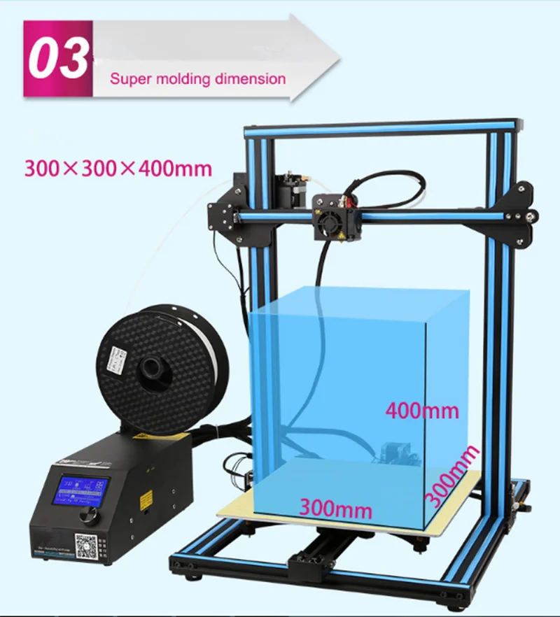 Prints size of 300 * 300 * 400mm / 11.81 * 11.81 * 15.75 inch,No longer will you be limited to small models.
