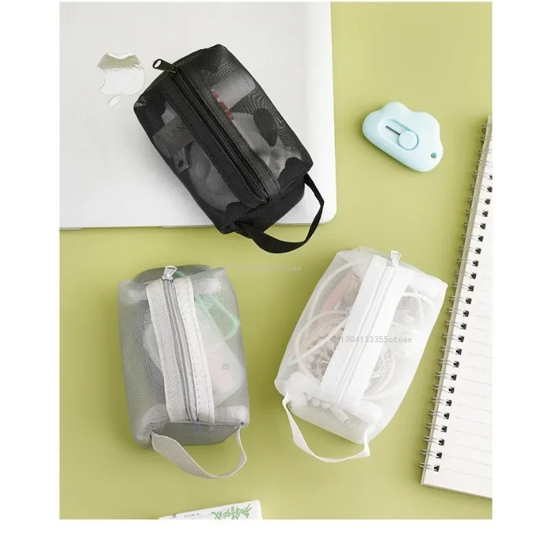 Novo saco transparente mini zíper portátil quadrado malha de náilon moeda bolsa grande capacidade chave fone de ouvido organizador bolsa saco de cartão