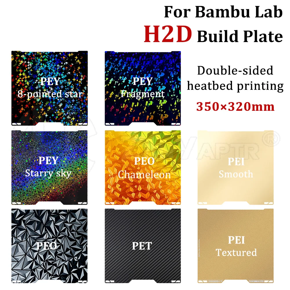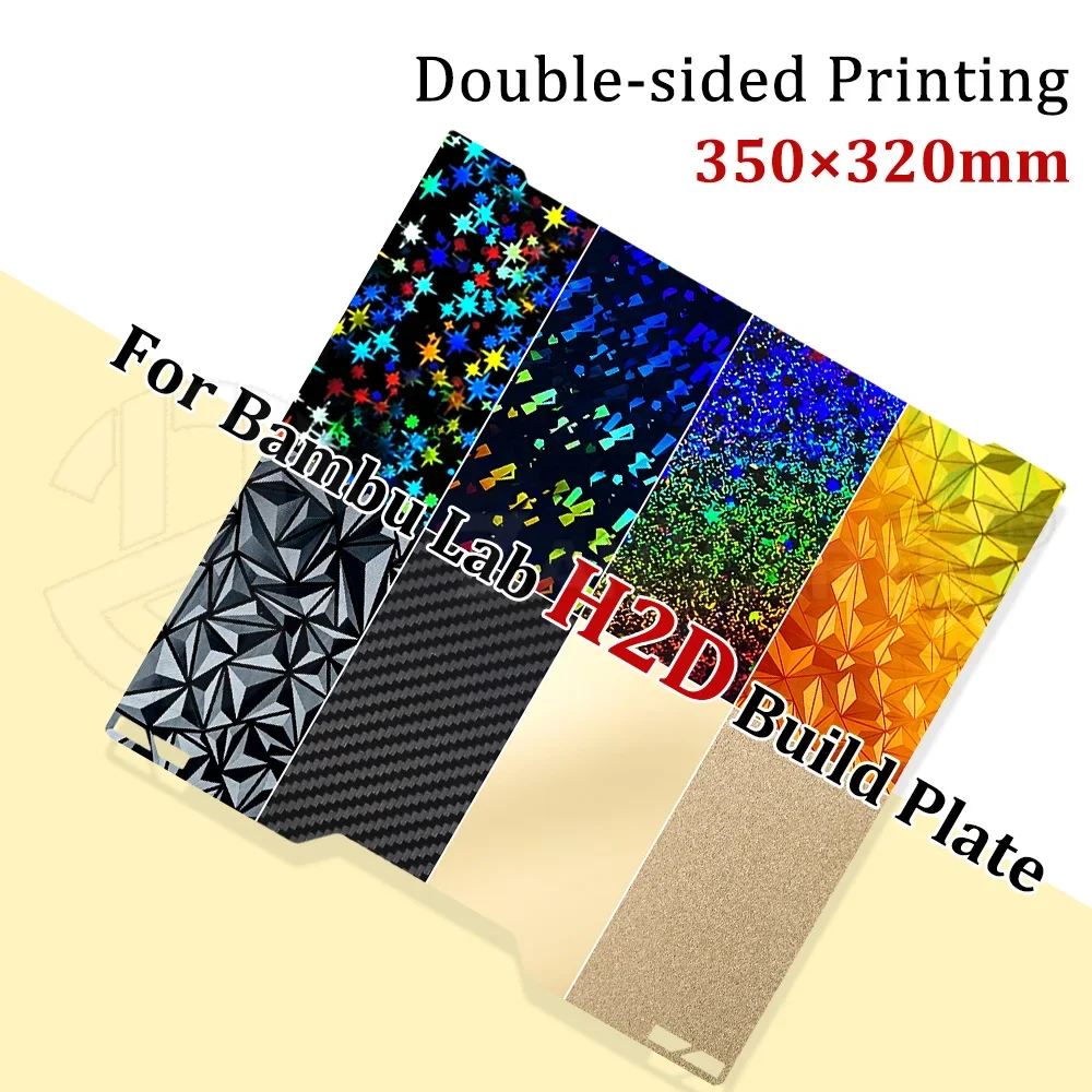 Para Bambu Lab H2D Hotbad Build Plate Texturizado/suave PEI PET PEO PEY 350×320 Cama Aquecida para impressora 3D