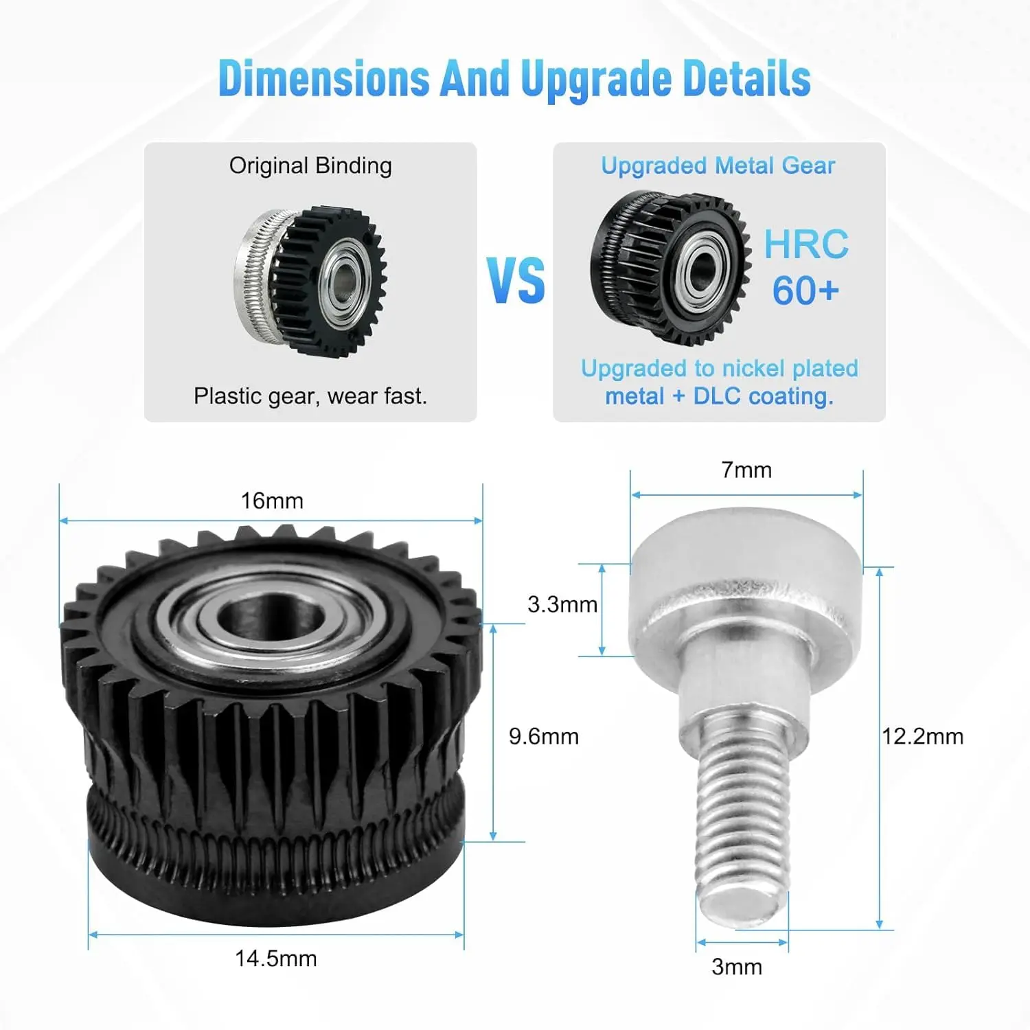 Para creality k1/k1c/k1 max/nder3 v3 plus engrenagens de liga todos os engrenagens de transmissão de filamento de metal roda extrusora de aço endurecido revestido dlc