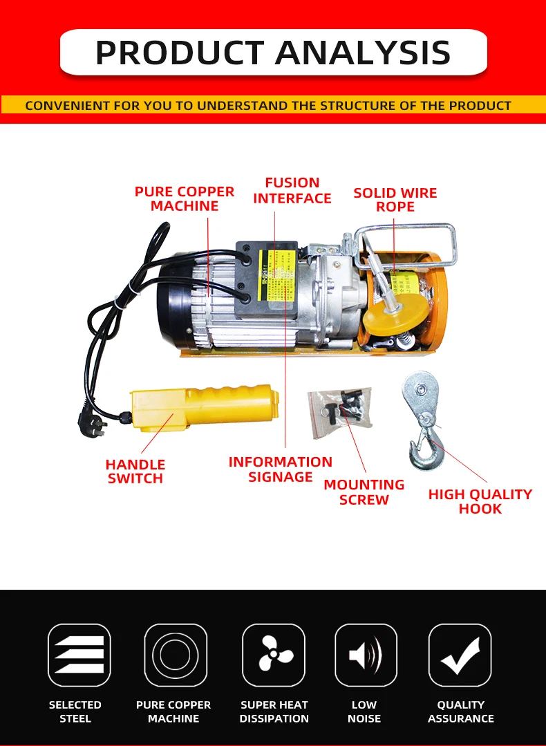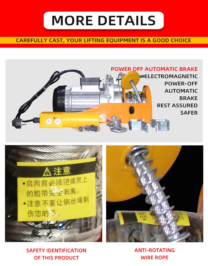 Pequeno guindaste de elevação, cabo de fio, motor elétrico, puxando talha pa Waerhouse, talha de carga