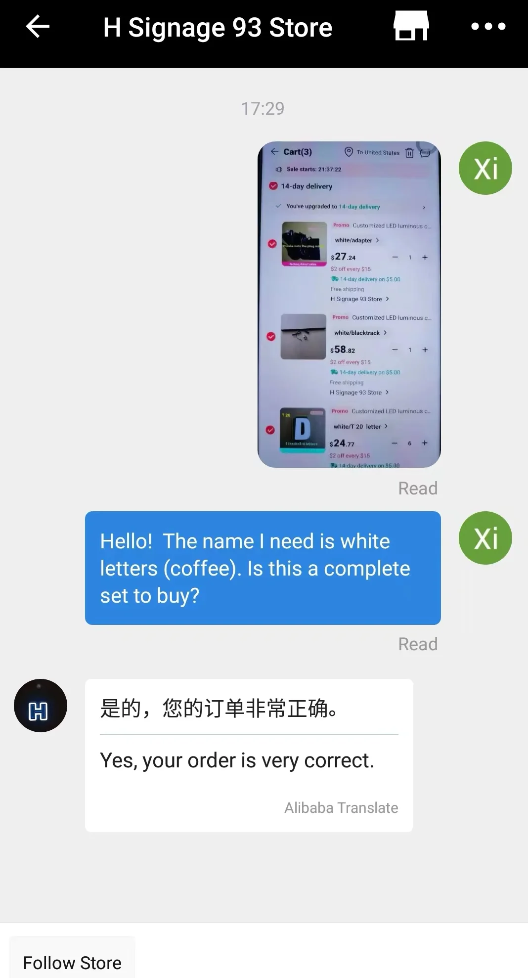 Quando você faz um pedido com o número correspondente de letras, observe as letras que você precisa no pedido ou envie-as para o atendimento ao cliente.