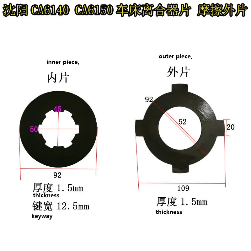 Placa de fricção para torno/ca, embreagem interna/externa, pastilhas de freio, acessórios para máquinas-ferramentas, novo, 1 peça, ca/ ca
