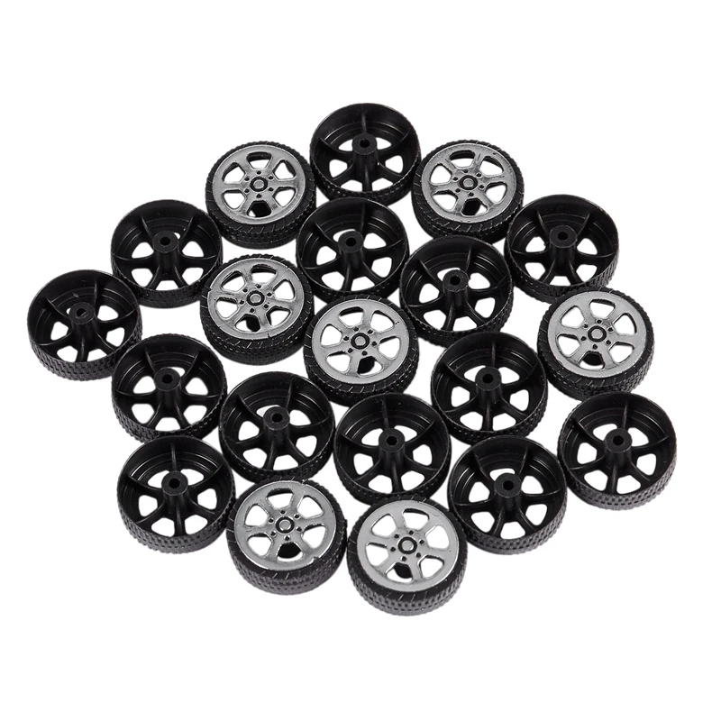 Package Content: 20 x Toy Wheels; Main Color: Black, Silver Tone