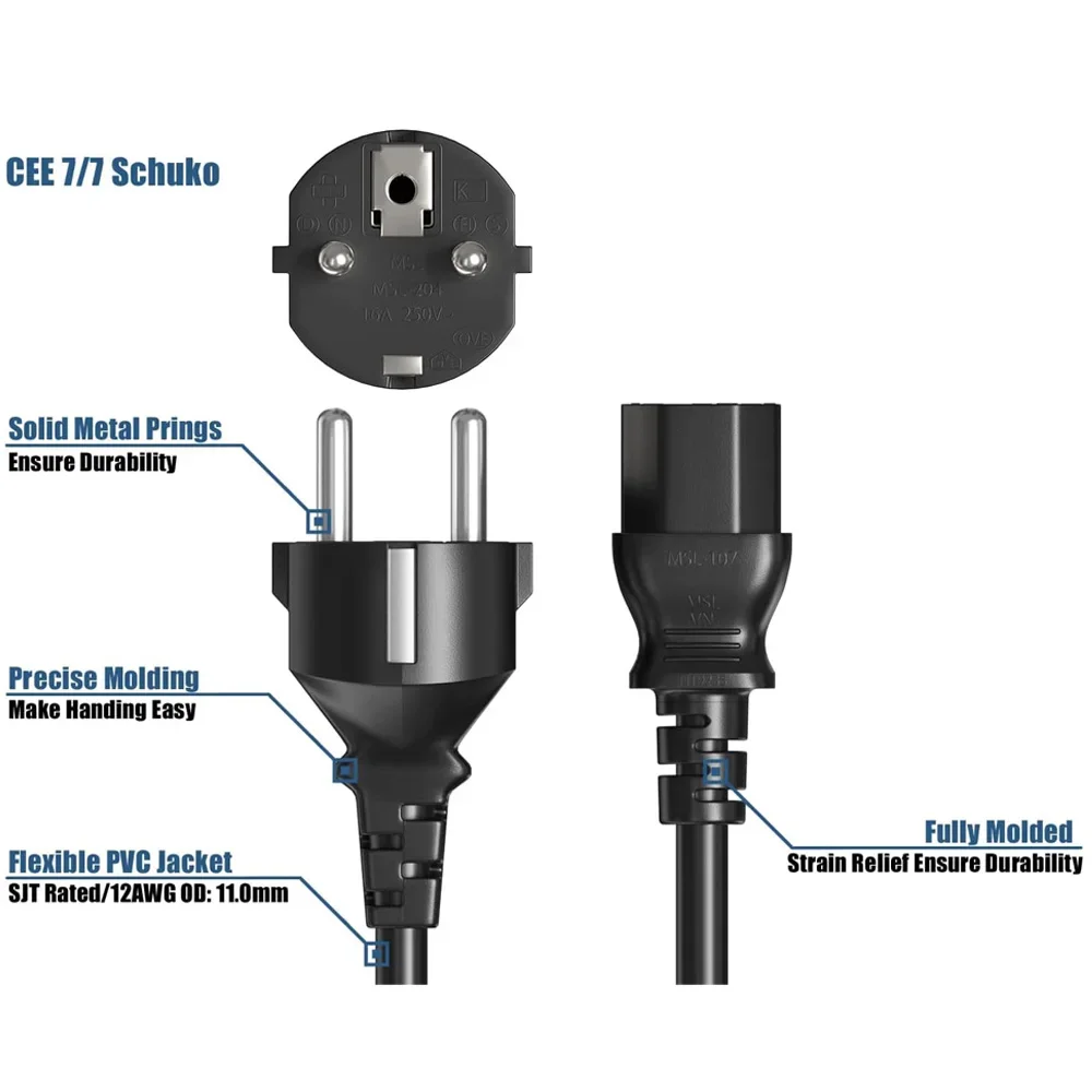 Plugue de viagem europeu, cabo de alimentação para tomada tipo C UE Itália Espanha Alemanha França, plugue UE preto de 120 cm para módulo laser Creality