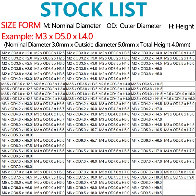 Formulário de tamanho: Nomianel M x Diâmetro Externo OD x Altura H
