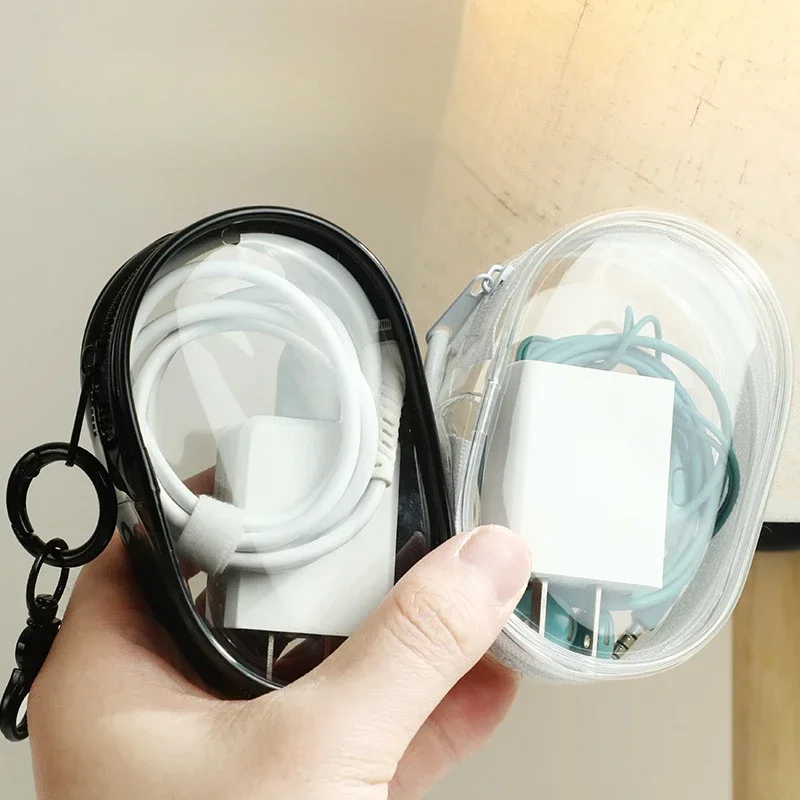 Portable Mini Transparent Storage Bag with Zipper Multifunctional Headphone and Charger Case Travel Accessories with Keychain