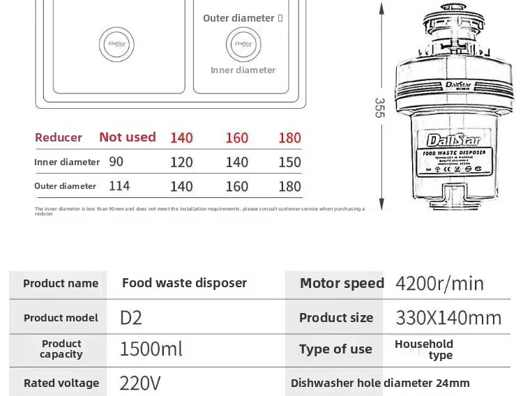 Processador de resíduos de alimentos, pia silenciosa, moedor de resíduos de alimentos, interruptor de ar, trituradores de resíduos de alimentos de alta potência