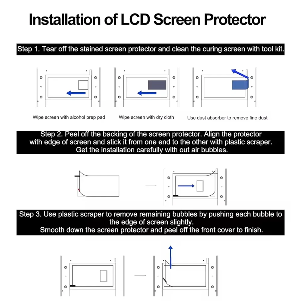 1.Retire o protetor de tela sujo e use o kit de ferramentas para limpar a tela curada.