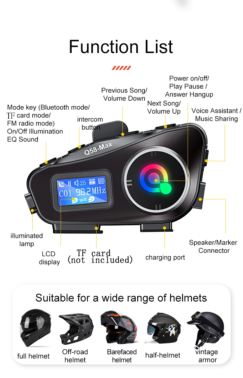Seja o primeiro a avaliar “Q58-Max capacete da motocicleta interfone fone de ouvido bluetooth display lcd 2 pilotos música compartilhar com luz led 500m interfone”