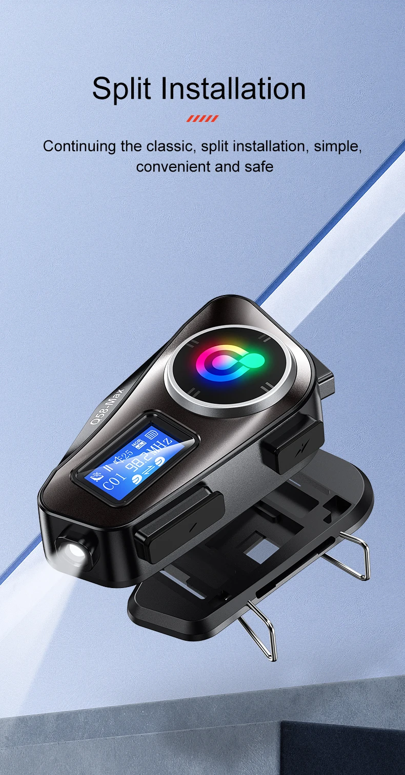 Q58-Max capacete da motocicleta interfone fone de ouvido bluetooth display lcd 2 pilotos música compartilhar com luz led 500m interfone