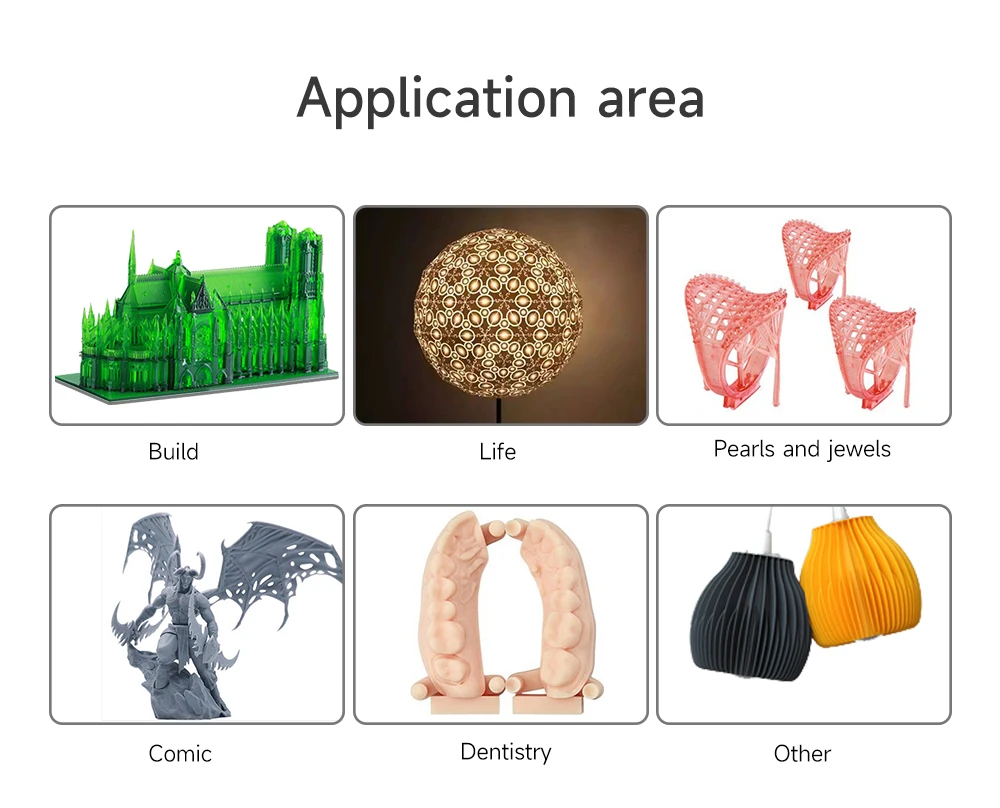Compatível com banda larga de 365-405nm, adequada para processamento de animação, modelos artesanais culturais e criativos, modelos e protótipos detalhados, etc.