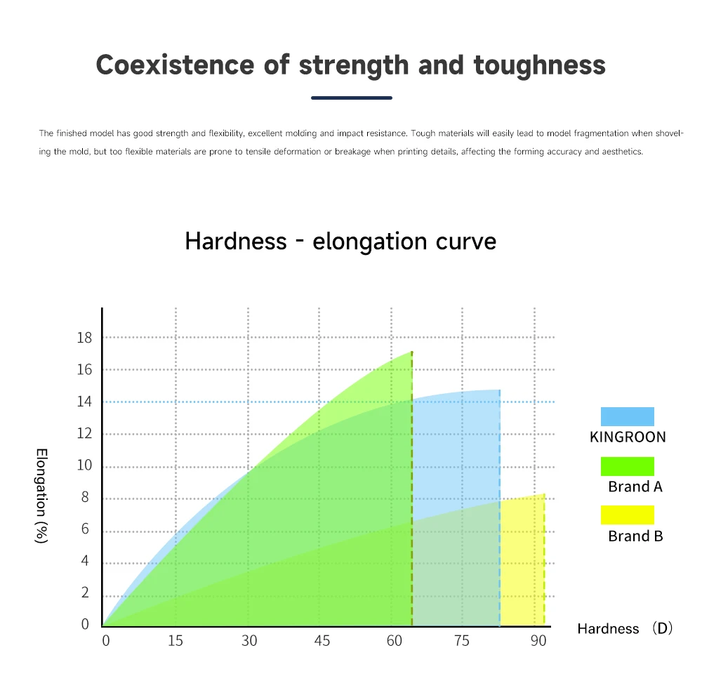 A baixa viscosidade da resina significa que possui grande fluidez e requer menor tempo de exposição durante o processo de impressão, o que ajuda a melhorar a velocidade de impressão.