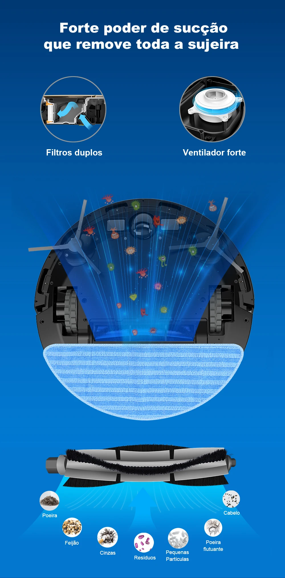 *OFERTA ESPECIAL: 1 par de escovas laterais, 1 filtro HEPA, 1 pano mop
