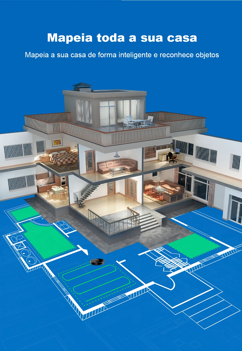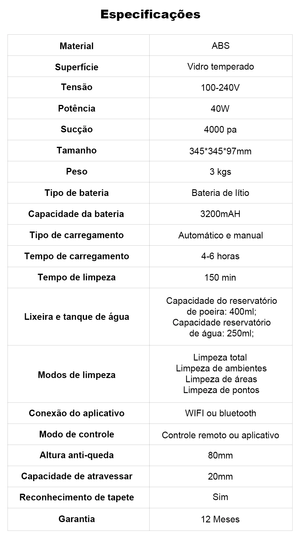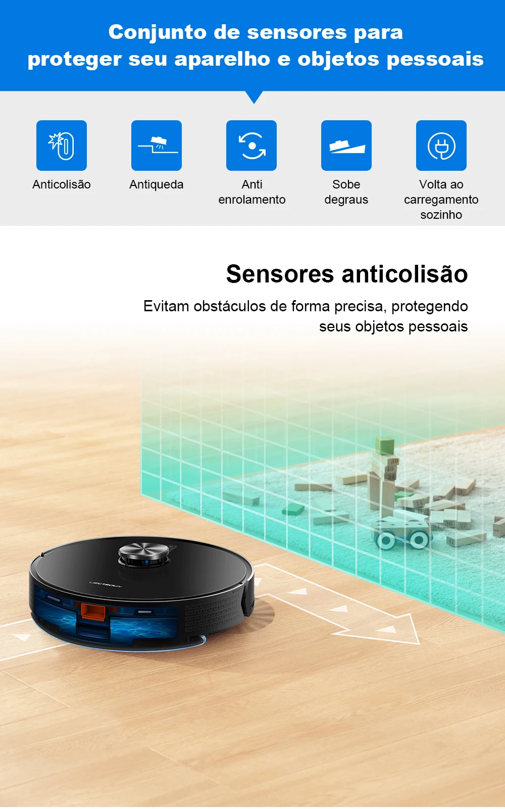 - Utilize com precaução em casas / apartamentos com mais de um andar ou escadas. O sensor antiqueda detecta degraus até 8 cm.