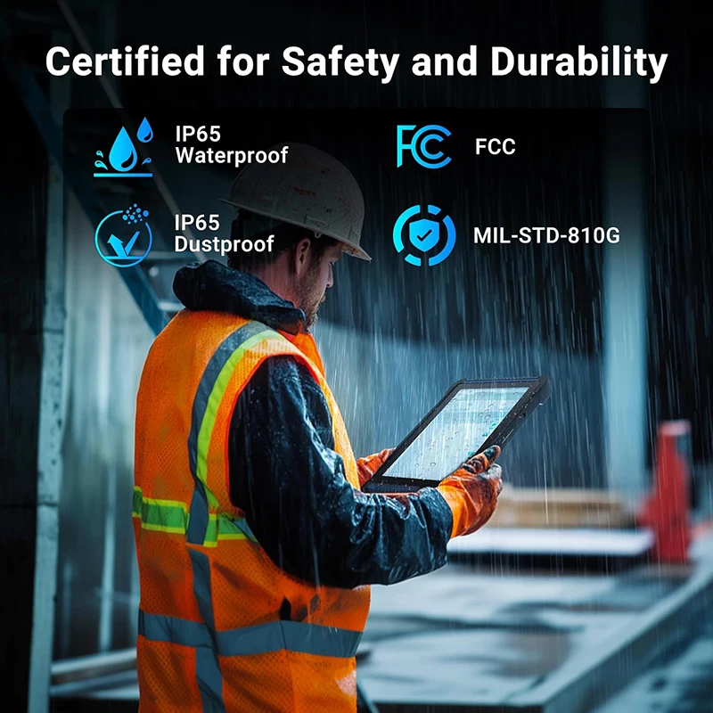 • IP65 ULTIMATE RUGGEDNESS: Built to thrive in the harshest environments, Tera T02W tablet features an IP65 rating, providing complete protection against dust and water ingress. Certified to MIL-STD-810G standards, it withstands extreme temperatures, vibrations, and shocks, ensuring reliable performance in demanding conditions. Engineered to endure drops from up to 4ft, its robust construction guarantees longevity and durability. Perfect for rugged industrial settings.