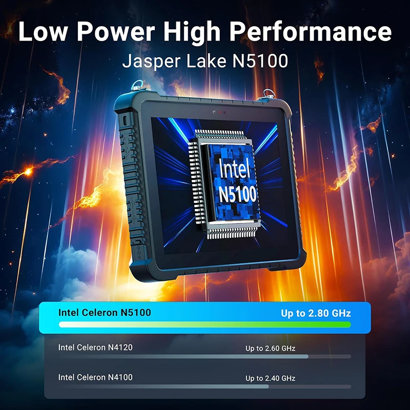 • INTEL N5100 PROCESSOR WINDOW 11 HOME: Experience unmatched speed and reliability with the Intel Jasper Lake N5100 processor, designed to power through demanding tasks effortlessly. Combined with Windows 11 Home, 8GB RAM, and 128GB storage, this industrial tablet is your ultimate productivity partner. Enjoy lightning-fast multitasking, ample space for critical files, and cutting-edge technology that takes your work efficiency to the next level.