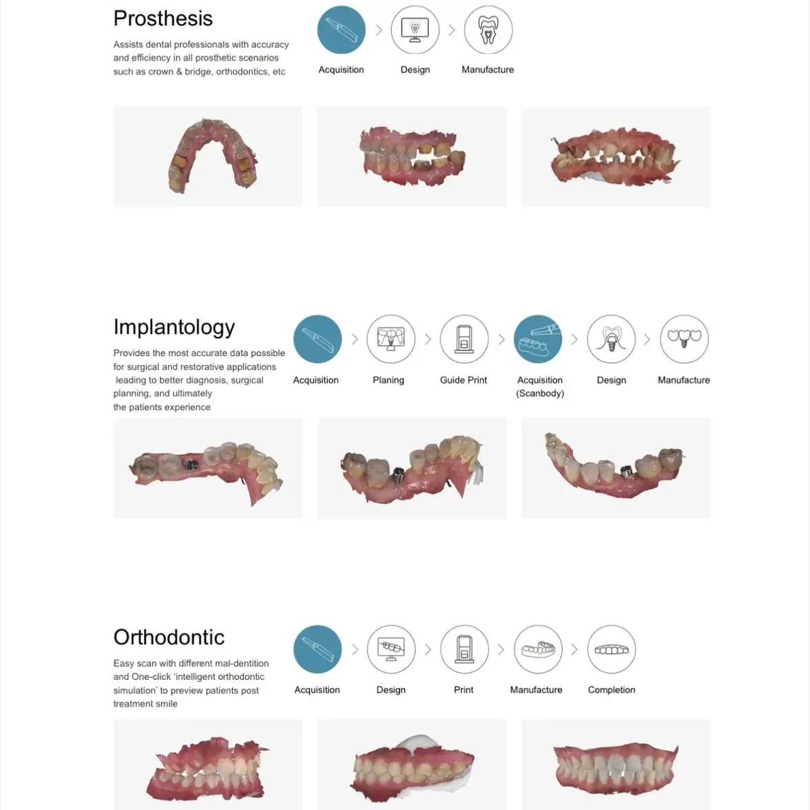 9. tomada rápida do molde: velocidade linear da exploração até 80 mm/s uma reconstrução mais rápida, algoritmo combinando mais aperfeiçoado, varredura real da boca cheia somente de 90S.