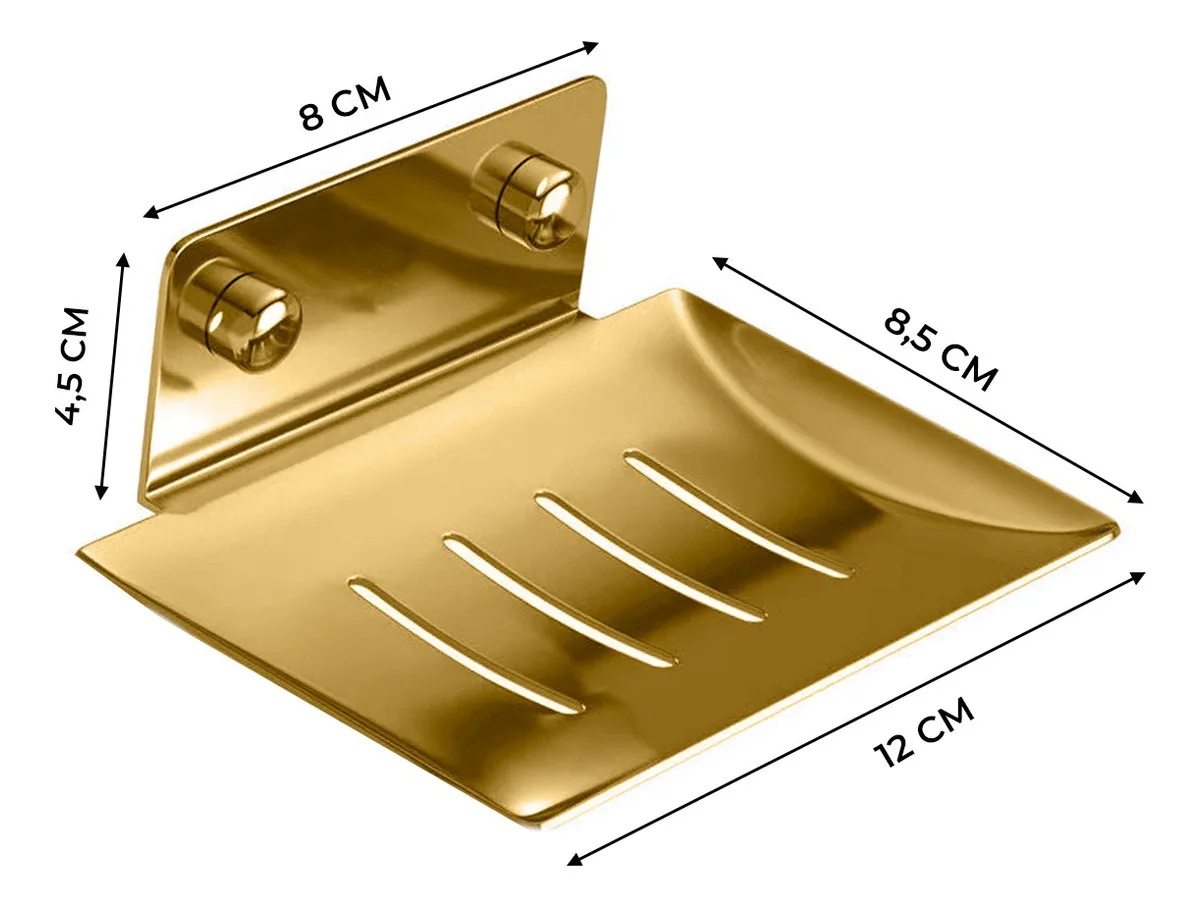 Saboneteira Dourada Banheiro Porta Sabonete Luxo Aço Inox 304 Brinovar