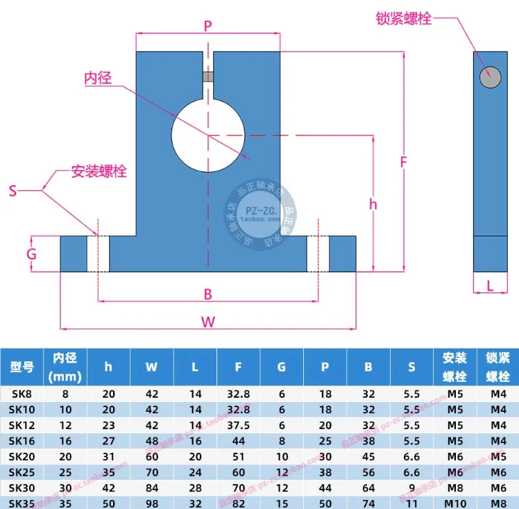 SK16 16mm Guia de eixo de trilho linear Suporte CNC